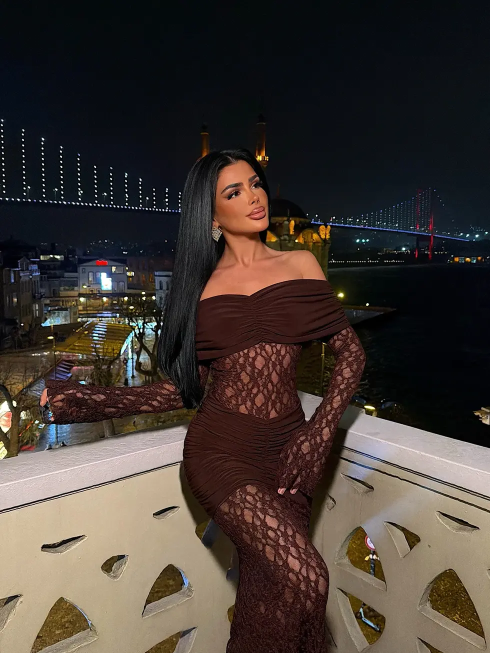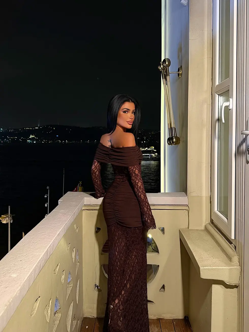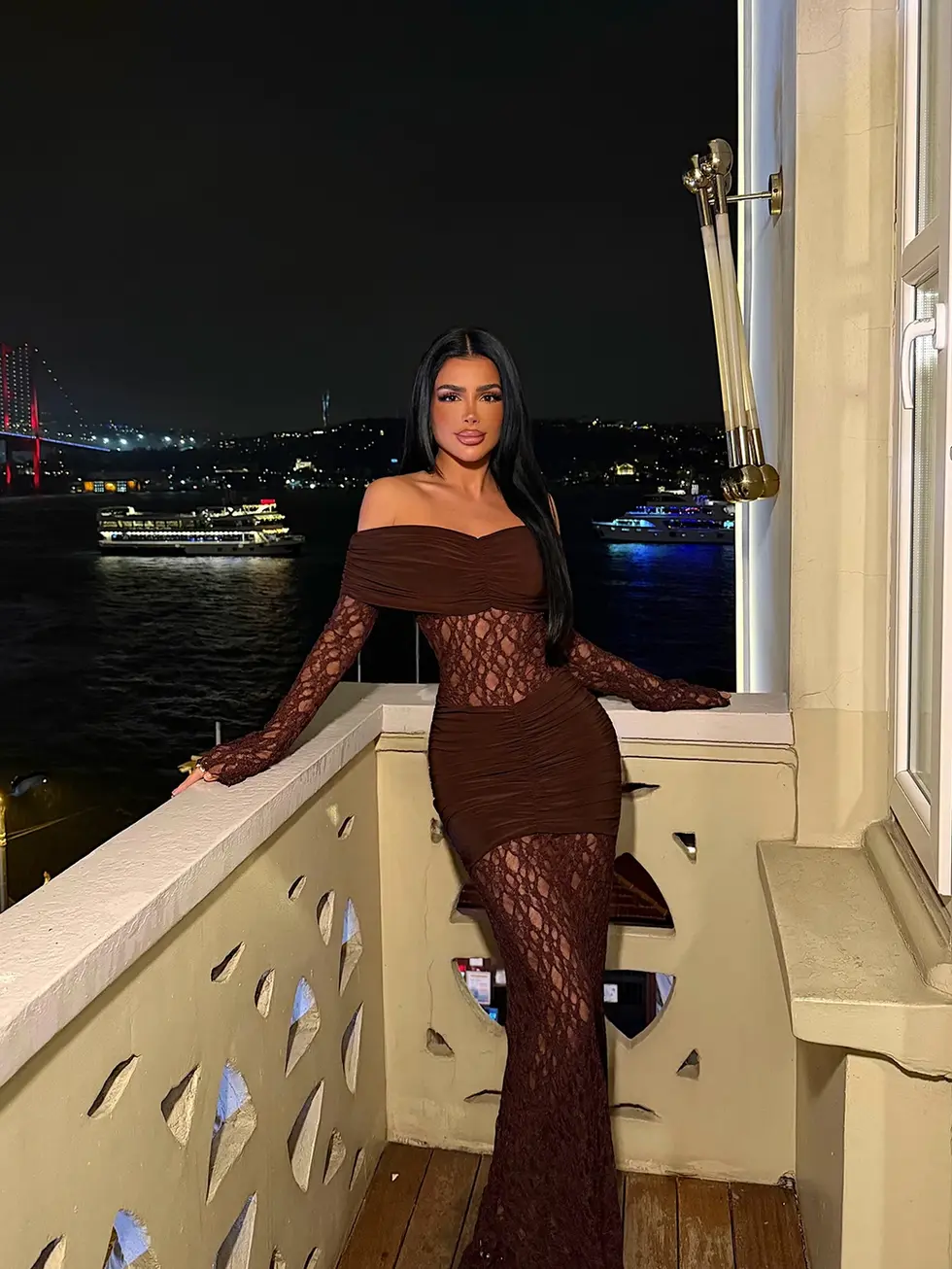 Brun drapert lang kjole